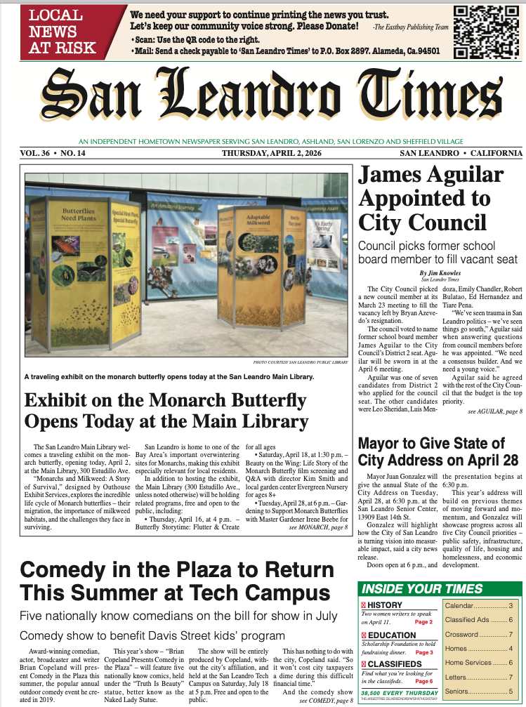 San Leandro Times is an independent hometown community newspaper serving the communities of San Leandro, San Lorenzo, Ashland and Sheffield Village