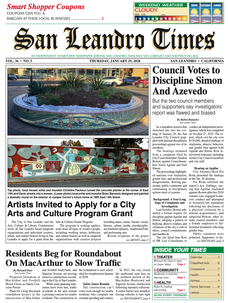 San Leandro Times is an independent hometown community newspaper serving the communities of San Leandro, San Lorenzo, Ashland and Sheffield Village